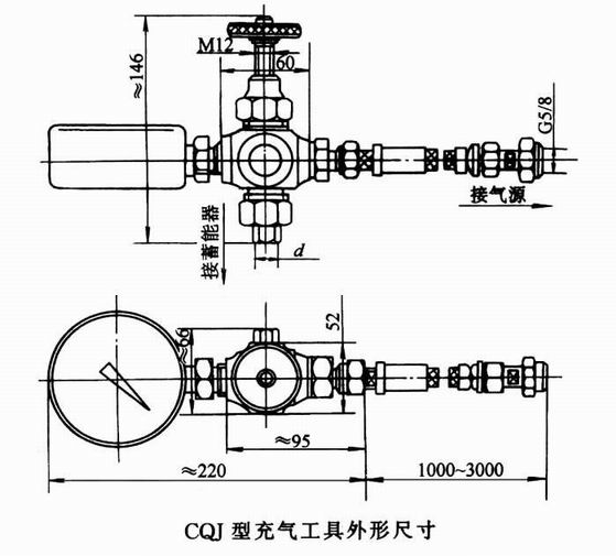 型 號 | 公稱壓力 /MPa | 配用壓力表 | 與蓄能器連接尺寸 /mm | 膠管內徑規(guī)格 /mm | |
